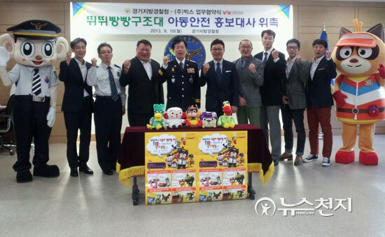 [천지일보 경기=강은주 기자] 경기지방경찰청(청장 이만희)은 어린이범죄예방 위한 홍보를 효과적으로 하기 위해 최근 어린이들에게 인기 있는 애니메이션 캐릭터 ‘뛰뛰빵빵 구조대’를 제작한 업체인 (주)빅스 크리에이티브와 16일 교류협력 협약을 맺었다.