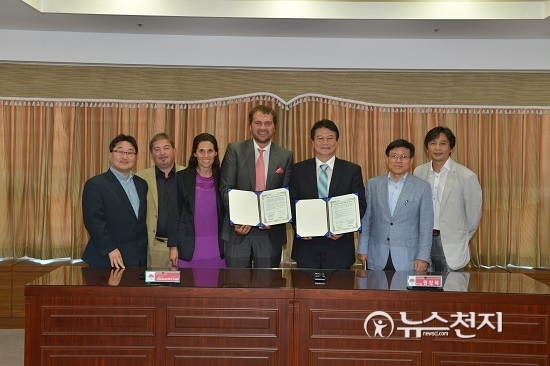 [천지일보 원주=이현복 기자] 지난 16일 오후 강원 원주시청 7층 투자상담실에서 원창묵 시장(원주문화재단 이사장)과 이탈이라 국제적 문화기업인 알레산드로 주인(Alessandro Zuin) 체네인터내셔널 대표가 문화 예술에 대한 국제적 교류 협약식을 가졌다.