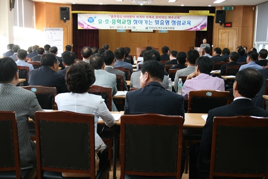 [천지일보 전남=백형순 기자] 전라남도 여수교육지원청(교육장 김종구)은 23일 시교육청 대회의실에서 9월 1일자 신규 승진교장 10명을 포함한 유·초·중학교 교장 74명이 참석한 가운데 클린 여수구현을 위한 찾아가는 맞춤형 청렴교육을 실시했다.