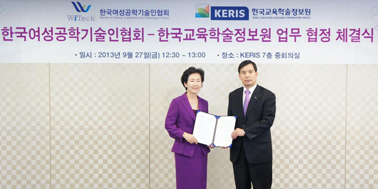 한국교육학술정보원(원장 임승빈, KERIS)과 한국여성공학기술인협회(회장 최영미) 27일 업무 협정을 맺고 여성리더십 및 진로지도 분야 교수학습자료의 활용 및 상호협력을 약속했다.
