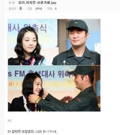 또한 해당 글의 게시자는 “잘 되면 레알 범죄. 나이 31-17=14”라는 설명을 덧붙여 놀라움을 자아냈다.