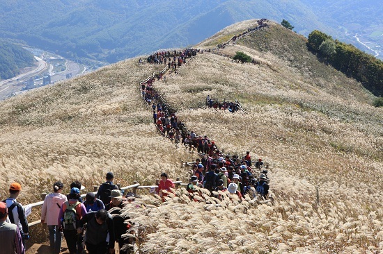 해발 1119 미터 정상에 눈부시게 펼쳐진 30만평의 은빛물결 억새바다는 장관을 이루며 매년 수십만 관광객들의 눈길을 사로잡고 있다.