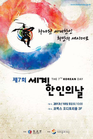 [천지일보=백은영 기자] 재외동포재단(이사장 조규형)은 제7회 세계한인의 날을 기념해 오는 5일 서울 국립중앙박물관 극장 ‘용(龍)’에서 한민족 문화예술 축제 ‘2013 코리안페스티벌’을 개최한다.
