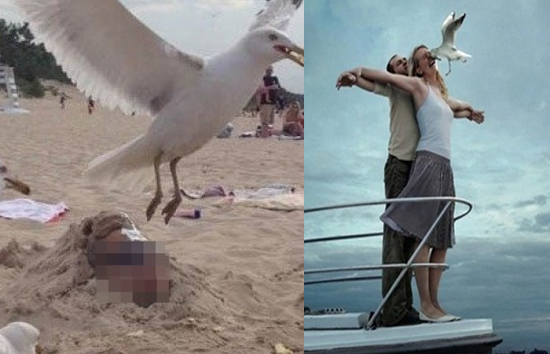 하지만 어디선가 날아온 갈매기가 여자의 코를 물어뜯고 있어 웃지 못할 상황이 연출됐다.