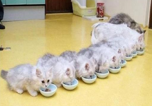 공개된 사진 속에는 여러 마리의 고양이들이 앞에 놓은 밥그릇에 얼굴을 대로 일제히 밥을 먹고 있다. 특히 밥을 먹는 모습에서 군대 특유의 각이 연상돼 웃음을 자아내고 있다.
