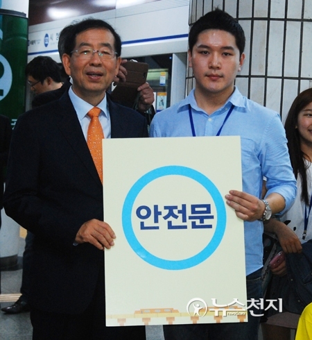 [천지일보=장수경 기자] 한글문화연대와 우리말 가꿈이(우리말글 사랑 대학생 동아리)가 한글날인 10월 9일 오후 1시 서울 시청역에서 ‘스크린도어’ 지하철 안내 방송이 “안전문이 열립니다”로 바뀌는 것을 축하하는 행사를 마련했다.