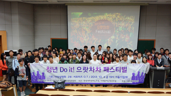 이번 페스티벌에서는 약 70여 개 대학생 단체와 대학생 1000여 명이 참가한 가운데 청년문화, 청년 일자리, 청년복지, 공익실현, 국제협력과 관련한 다양한 프로그램이 진행될 예정이다. 다양한 공연팀의 재능기부로 진행되는 무대행사도 열린다. 자세한 사항은 ‘청년 Do it! 으랏차차 페스티벌’ 사무국(070-7865-1682)에 문의하면 된다.