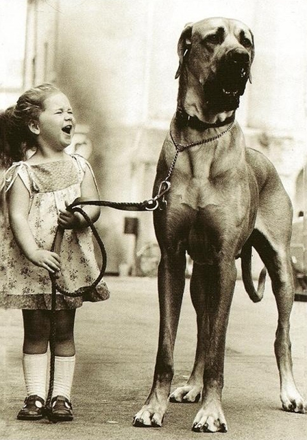 하지만 어린 소녀가 산책을 시키는 개는 소녀보다 큰 몸집으로 오히려 개가 소녀를 산책시키는 듯한 모습을 보이고 있다.