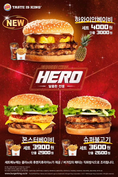 신메뉴 ‘하와이안베이비’와 ‘히어로 시즌1’에서 가장 반응이 좋은 제품들을 함께 출시하면서 소비자들은 하루종일 우수한 품질의 버거킹 제품을 부담 없는 가격으로 즐길 수 있게 됐다.