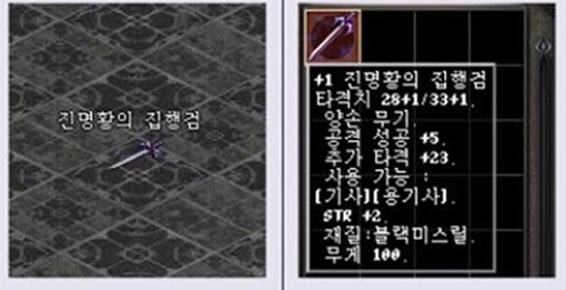 김씨가 강화하려 한 ‘진명황의 집행검’은 제작 난이도가 높아 이용자들 사이에선 3천여 만원에 거래될 정도로 희귀한 아이템이다.