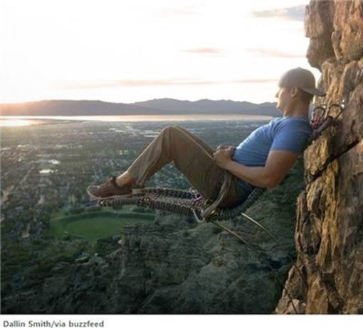 이 의자는 미국 출신의 암벽 등반가이자 디자이너로 활동 중인 한 20대 젊은이가 등반용 로프를 꼬아 110m 벼랑에 만든 것이다.