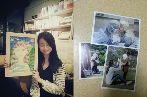 공개된 사진에는 박하선이 이채미로부터 받은 초상화를 들고 웃고 있는 모습이 담겨 있다.