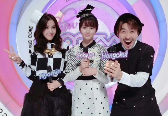 26일 소속사 코어콘텐츠미디어를 통해 공개된 사진은 MBC ‘쇼! 음악중심’의 스페셜 MC를 맡은 효민과 기존 MC 노홍철, 김소현이 깜찍한 모습으로 생방송 스탠바이 중인 모습이다. 효민은 샤이니 민호의 빈자리를 메꾸며 노홍철, 김소현과 MC로서 호흡을 맞출 예정이다.
