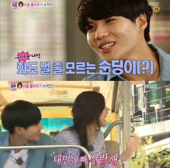 ‘우리결혼했어요4’ 손나은의 모습에 태민은 “너무 착해. 화도 낼지 모르는 순둥이!”라고 표현해 시청자들을 폭소케 했다.