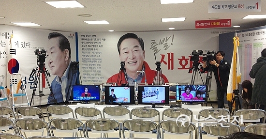 [천지일보=임문식 기자] 10.30 재보궐선거 투표일인 30일 경기 화성갑 새누리당 서청원 후보 측 캠프는 차분한 분위기 속에 투표 상황을 지켜보고 있다.