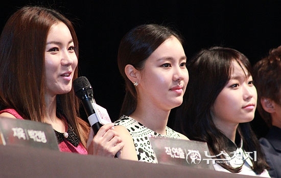 ▲ 故 김광석 탄생 50주년 기념 창작뮤지컬 ‘디셈버: 끝나지 않은 노래’가 31일 세종문화회관 대극장에서 제작 쇼케이스를 통해 첫 선을 보였다. 사진은 오소연, 김예원, 김슬기가 나란히 앉아 취재진에게 인사를 전했다.  ⓒ천지일보(뉴스천지)