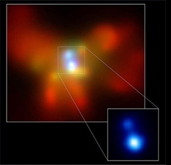 미래창조과학부는 12일 서울대학교 물리천문학부 우종학 교수팀이 칠레 북부에 있는 유럽남천문대의 구경 8.4m 거대 망원경과 허블우주망원경으로 은하와 블랙홀의 공동 진화를 이해하는 중요한 단서인 병합 후기 단계의 쌍둥이 블랙홀을 발견했다고 밝혔다.