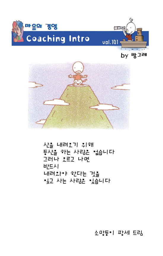 이전 기사보기 다음 기사보기 [마음의 경영] 산을 내려오기 위해 바로가기 복사하기 본문 글씨 줄이기 본문 글씨 키우기 스크롤 이동 상태바 [마음의 경영] 산을 내려오기 위해 오피니언 입력 2013.11.14 17:40 수정 2013.11.14 17:59 기자명 천지일보 newscj@newscj.com 페이스북(으)로 기사보내기 트위터(으)로 기사보내기 카카오톡(으)로 기사보내기 텔레그램(으)로 기사보내기 URL복사(으)로 기사보내기 바로가기 기사스크랩하기 다른 공유 찾기 본문 글씨 줄이기 가 본문 글씨 키우기 이 기사를 공유합니다 페이스북(으)로 기사보내기 트위터(으)로 기사보내기 카카오톡(으)로 기사보내기 텔레그램(으)로 기사보내기 URL복사(으)로 기사보내기 닫기 마음의 경영- vol. 101 천지일보는 24시간 여러분의 제보를 기다립니다. 천지일보 카톡 1644-7533 newscj@newscj.com 제보하기 천지일보 newscj@newscj.com 다른 기사 보기 관련기사 [마음의 경영] 누구나 잘못은 저지르지만 [마음의 경영] 목적을 이루기 위해 [마음의 경영] 올바르게 산다는 것은 [마음의 경영] 외모와 마음중에서 [마음의 경영] 이미 저질러진 일은 [마음의 경영] 삶이란? [마음의 경영] 천국은 준비된 자의 쉼터 [마음의 경영] 쓰레기에 새 생명을 [고전 속 정치이야기] 총명생의(聰明生疑) [마음의 경영] 난 마음을 먹는 것만으로도 [마음의 경영] 우리가 어디에 있든지 저작권자 © 천지일보 무단전재 및 재배포 금지 개의 댓글 삭제기준 회원로그인 작성자 비밀번호 댓글 내용입력 댓글 정렬 최신순 추천순 답글순 BEST댓글 BEST 댓글 답글과 추천수를 합산하여 자동으로 노출됩니다. 닫기 더보기 댓글삭제 삭제한 댓글은 다시 복구할 수 없습니다. 그래도 삭제하시겠습니까? 비밀번호 닫기 댓글수정 댓글 수정은 작성 후 1분내에만 가능합니다. 본문 / 400 비밀번호 닫기 내 댓글 모음 닫기