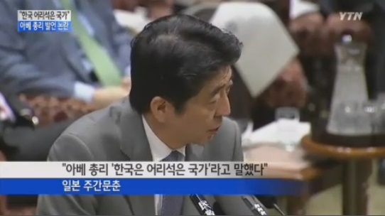 일본의 아베 신조 총리가 한국을 깎아 내리는 발언을 했다는 보도가 논란이 되고 있다.