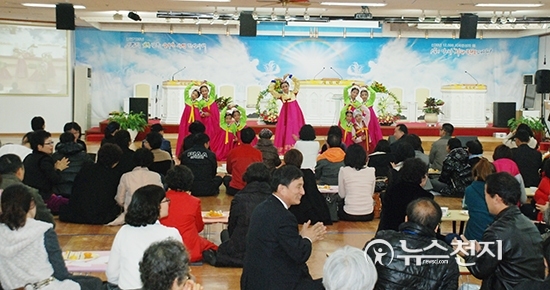 ▲ 신천지예수교 증거장막성전 야고보지파 본부 서울교회가 16일 오후 2시 대성전에서 제1기 ‘신천지 1000인의 평가단’ 신천지 평가 프로그램을 진행했다. 평가단이 신천지 어린이들의 고전무용 공연을 보고 즐거워하고 있다. ⓒ천지일보(뉴스천지)