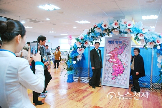 ▲ 신천지예수교 증거장막성전 서울야고보지파 본부 서울교회가 16일 오후 2시 대성전에서 제1기 ‘신천지 1000인의 평가단’ 프로그램을 진행했다. 평가단이 무궁화로 장식한 대한민국 지도 앞에서 기념사진을 촬영하고 있다. ⓒ천지일보(뉴스천지)