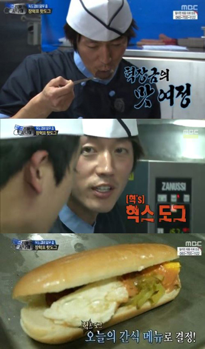 이날 장혁은 핫도그 빵을 갈라 달걀프라이, 소시지, 피클 순으로 끼워놓고 마지막 궁극의 황금비율로 만들어낸 특제소스를 넣었다.