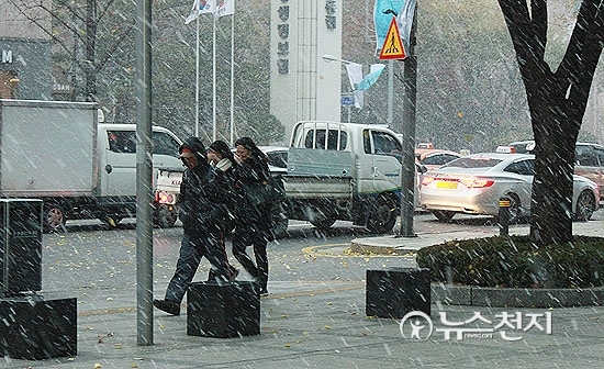 기상청은 이날 서울에서 첫눈이 관측됐다고 밝혔다. 서울의 첫눈은 작년보다는 5일 늦고 평년보다는 3일 빠르다.