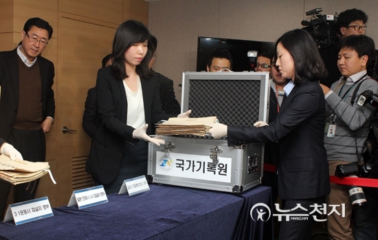 ▲ 국가기록원(박경국 원장)이 19일 오후 서울 세종로 정부서울청사에서 브리핑을 열고 3.1운동 시 피살자 명부와 일본 진재(震災)시 피살자 명부, 일제강점기시 피징용(징용)자 명부 등 총 67권을 수집해 분석한 결과를 공개하고 있다. ⓒ천지일보(뉴스천지)