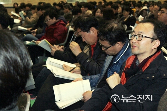 ▲ 25일 오후 2시 서울시 동대문구 한국외국어대학교 오바마홀에서 2014 대입정시 고등학교 교사 진학설명회에 참석한 선생님들이 강의를 듣고 있다. ⓒ천지일보(뉴스천지)