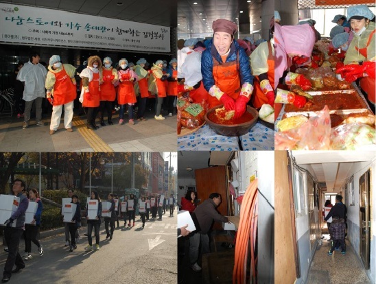 용산구청 야외광장에서 오전 9시부터 열린 김장봉사엔 가수 송대관도 참여해 봉사자들을 위해 신나는 노래를 선물해 봉사자들을 응원했다. 봉사자들은 3시간에 걸쳐 만든 김치를 용산 쪽방촌을 가가호호 방문해 주민들에게 따뜻한 인사말과 함께 김치를 나눠줬다.