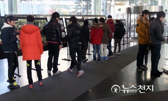 [천지일보=김현진 기자] IBK기업은행 본점 로비에서 전시 중인 천지일보 특별사진전에 28일 서울로봇학교 40여 명의 학생들이 방문했다.