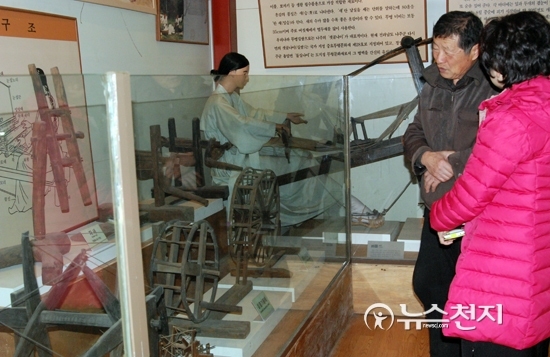 ▲ 경기도 파주시 법원읍에 있는 두루뫼박물관의 강위수 관장이 물레를 소개하고 있다. ⓒ천지일보(뉴스천지) [천지일보=장수경 기자] 지난달 26일 경기도 파주시 법원읍에 있는 두루뫼박물관에서 강위수 관장이 박물관 전시품을 소개하고 있다.