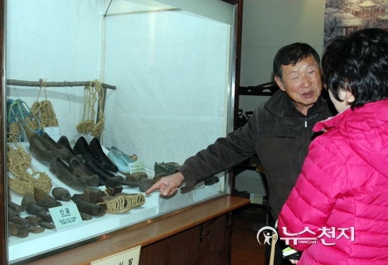 ▲ 경기도 파주시 법원읍에 있는 두루뫼물관의 강위수 관장이 선조들이 사용한 신발에 대해 설명하고 있다. ⓒ천지일보(뉴스천지) [천지일보=장수경 기자] 지난달 26일 경기도 파주시 법원읍에 있는 두루뫼박물관에서 강위수 관장이 박물관 전시품을 소개하고 있다.