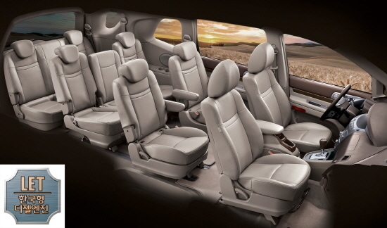 새롭게 선보인 코란도 투리스모 9인승 모델은 2열 시트와 4열 시트를 2인 공간으로 변경하고 2열 시트 양쪽에 암레스트를 적용했다.