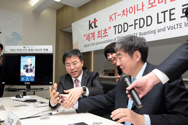 KT는 4일 중국 차이나모바일과 함께 세계 최초로 이종 LTE 네트워크 상용망 간에 음성, 데이터로밍 및 HD영상통화(VoLTE)에 성공했다고 밝혔다.
