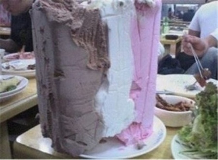공개된 사진 속 다 못 먹을 아이스콘은 초콜릿, 바닐라, 딸기 맛으로 이뤄져 커다란 벽돌처럼 서 있다.