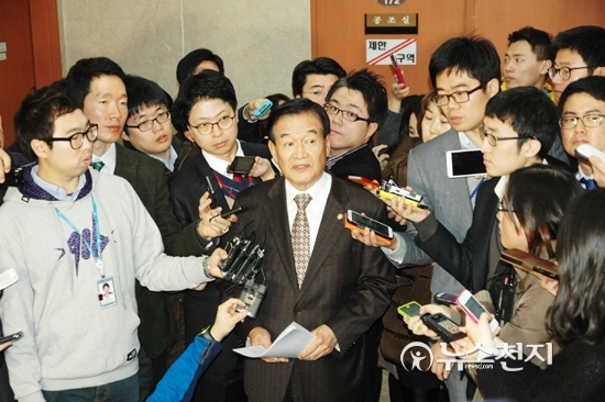 [천지일보=유영선 기자] 국회정보위원장인 새누리당 서상기 의원이 13일 오전 국회 정론관에서 북한 장성택 국방위원회 부위원장의 사형과 관련해 긴급 기자회견을 마친 뒤 취재진의 질문에 답변하고 있다.