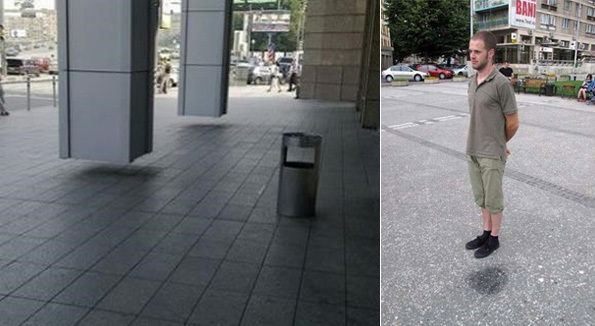 이와 함께 ‘공중부양 착시현상’을 만드는 간단한 원리도 주목됐다. 사람이 서 있는 바닥 옆에 물을 부려 마치 공중에 뜬 사람의 그림자처럼 보이는 방법이다.