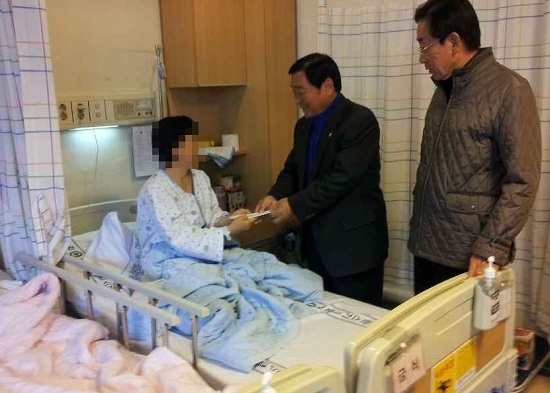 [천지일보 원주=이현복 기자] 강원경찰청 원주경찰서보안협력위원회(회장 이희준)는 16일 자궁근종으로 수술을 받고 원주 기독병원에 입원중인 북한이탈주민 조모(46,여) 씨에게 생활지원금을 전달했다.