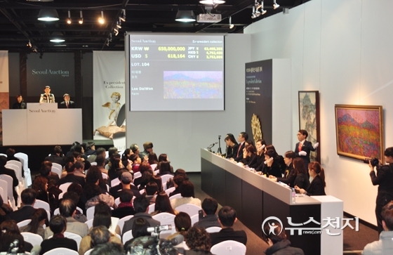지난 11일 경매사 K옥션이 개최한 ‘전재국 미술품 컬렉션’에서도 1시간 20분 만에 80점(25억 7천만 원)이 모두 팔렸다. 당시 최고가에 낙찰된 작품은 김환기 화백의 ‘24-Ⅷ-65 사우스 이스트’이다. 낙찰금액은 5억 5천만 원이다.