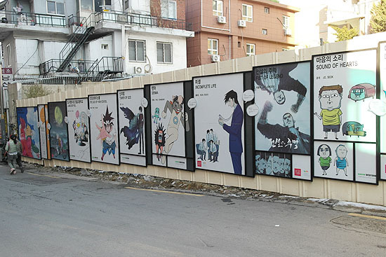 ‘만화의 거리’는 대형건물 벽면, 옹벽은 물론 전봇대 지주나 낡은 계단에 한국 만화계에 큰 획을 그은 작품들의 작가가 직접 그린 그림들로 꾸며져 국내 최대 만화의 거리 ‘재미로’로 이름 붙여졌다.