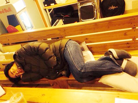 [천지일보=강은영 기자] 밴드 ‘장기하와 얼굴들’의 멤버 양평이형의 자는 모습이 공개됐다.