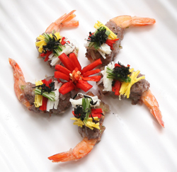 [재료] 대하 5마리, 쇠고기 다진 것 200g, 황백지단, 당근, 홍고추, 오이, 석이버섯