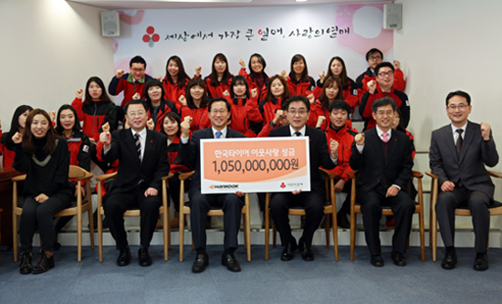 [천지일보=이태교 기자] 한국타이어(대표이사 서승화)가 연말연시를 맞아 ‘희망 2014 나눔 캠페인’을 주관하는 사회복지공동모금회에 성금 10억 5천만 원을 전달했다.