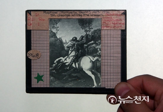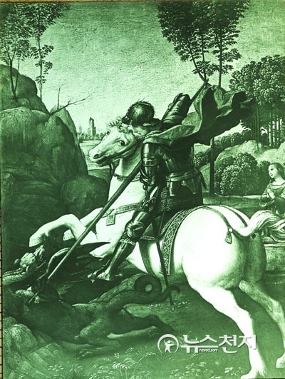 말의 해를 맞아 본지가 정성길 계명대 동산의료원 명예박물관장으로부터 컬러 유리원판필름에 담긴 라파엘로 성화(용을 죽이는 성 게오르기우스) 작품을 입수했다. 이 작품은 공개된 적은 있으나 유리원판에 담긴 모습으로 공개되는 것은 이번이 처음이다. 그림에는 백마를 탄 성 게오르기우스가 용을 창으로 찌르는 모습이 담겨 있다.