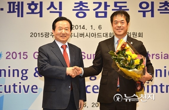 2015 광주하계유니버시아드 조직위원회(위원장 강운태 시장‧정의화) 위원장인 강운태 시장은 6일 개폐회식 총감독에 신시컴퍼니 박명성 대표를 위촉하고 위촉장을 수여했다.