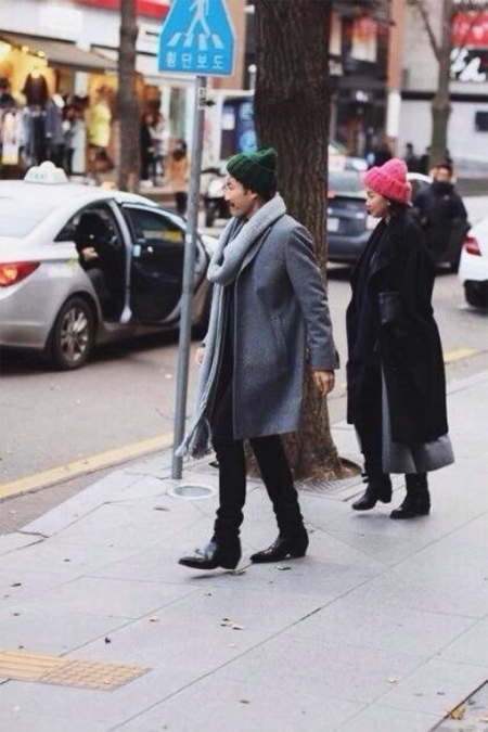공개된 사진에는 노홍철과 장윤주가 가로수길에서 함께 서 있는 모습이 담겨 있다. 특히 두 사람은 맞춘 듯 검은색 긴 코트를 입고 비니로 멋을 내 보는 이들의 눈길을 사로잡았다.