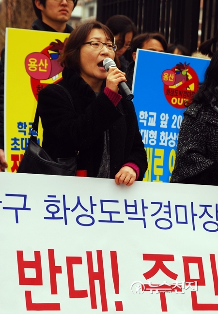 [천지일보=장수경 기자] 용산구화상경마도박장입점저지주민대책위(주민대책위)가 7일 오후 서울시 용산구 성심여자중고등학교 앞에서 기자회견을 열고 신임 한국마사회장 취임, 화상도박장입점 시도에 대해 입장발표를 했다.