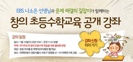 ‘창의 초등 수학교육 강좌’는 초등 서술형 수학교재 ‘문제해결의 길잡이’의 어머니 자문단 ‘부모마니아’ 프로그램 중 하나다. 이번 강좌는 보다 많은 학부모와 함께 유익한 자녀 교육 정보를 공유고자 특별히 공개 강좌로 마련됐다.