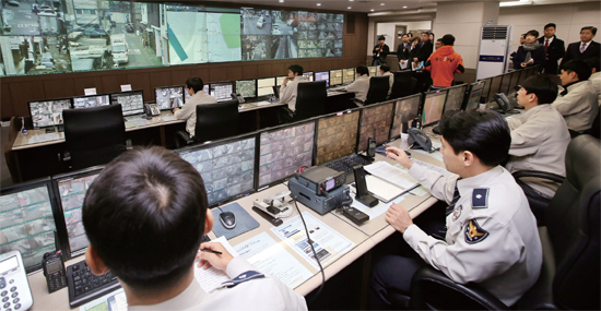 ‘CCTV 통합관제센터’에 알람이 울리면 사고 상황 화면이 크게 깜빡거리고 경찰에 즉시 전파돼 현장출동이 이뤄진다. ‘CCTV 통합관제센터’는 시 군구가 설치‧운영하는 CCTV 관제기능(방범, 불법 주정차, 재난·재해, 주 차관리, 쓰레기 단속, 시설물 관리 등) 을 통합‧관리하는 시설이다.